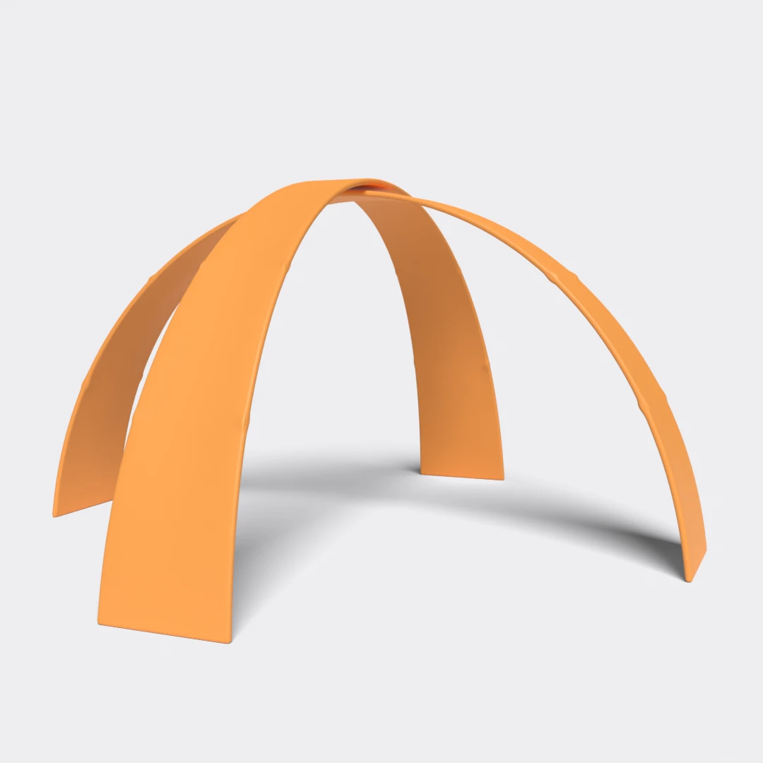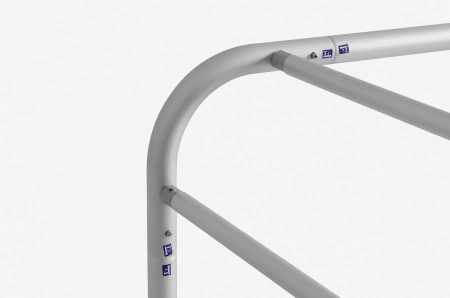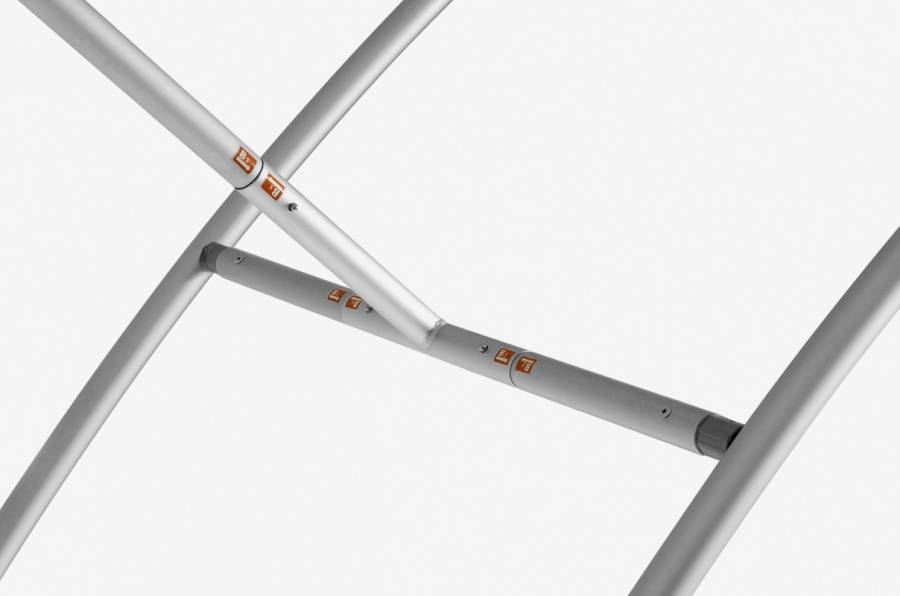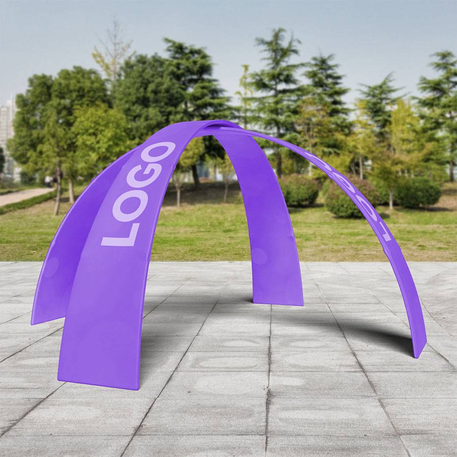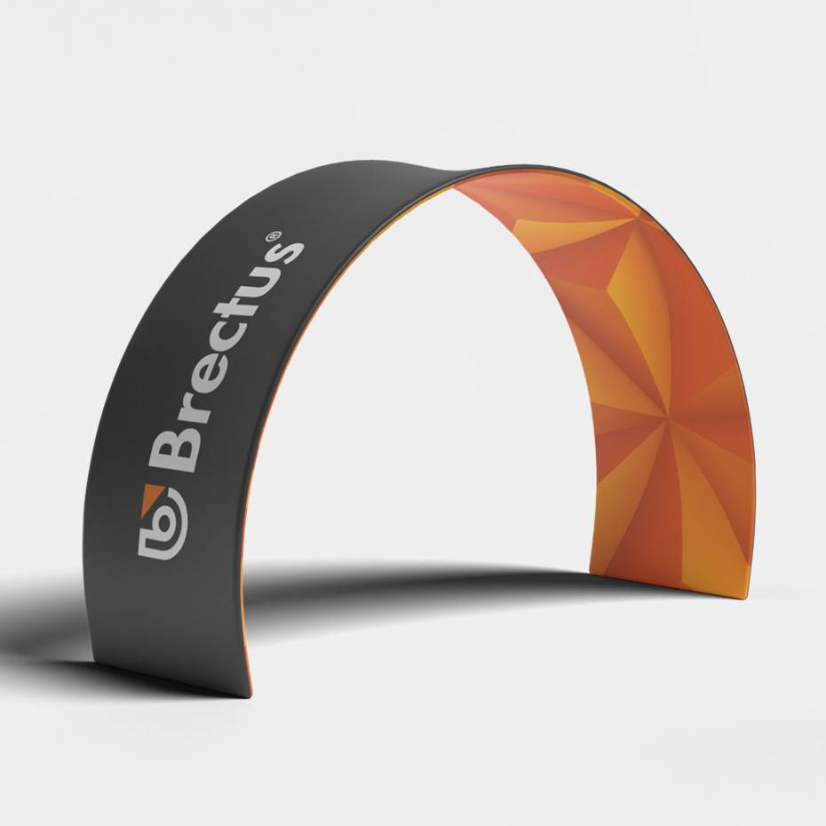 Den uvanlige, spesielle formen tiltrekker seg oppmerksomhet. Montering av disse flotte tekstil bannerne er meget enkel og gjøres på 1-2-3. Rørene er merket med tall så de raskt og lett kan festes sammen korrekt. Med den eksepsjonelle formen blir derfor portalene et trekkplaster når de brukes som utstillingssystemer. Det spesielle materialet sørger dessuten for at banneret unngår bretter etter installasjon.