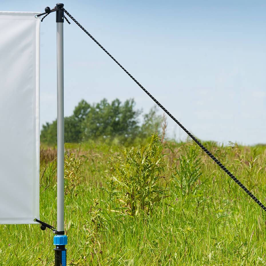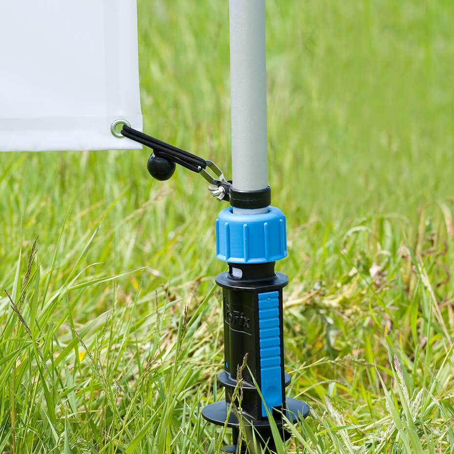 Bannerstand Stående er en superenkelt, fleksibel utendørs banner stand. Utendørs banner passer for alle utendørs event og arrangementer der det er mulighet for å feste til bakken. Med to skruføtter og tau er den derfor enkel å plassere der man ønsker oppmerksomhet.