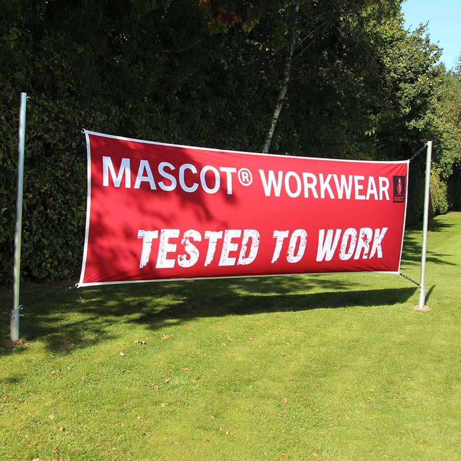 Velg mellom banner med ensidig eller tosidig trykk. Et portabelt bannersystem i aluminium for oppheng av banner mellom to stående stativ. Meget enkelt i bruk, lett å montere og bytte budskap på. Utendørs Banner stand stående leveres uten banner, som bestilles separat.