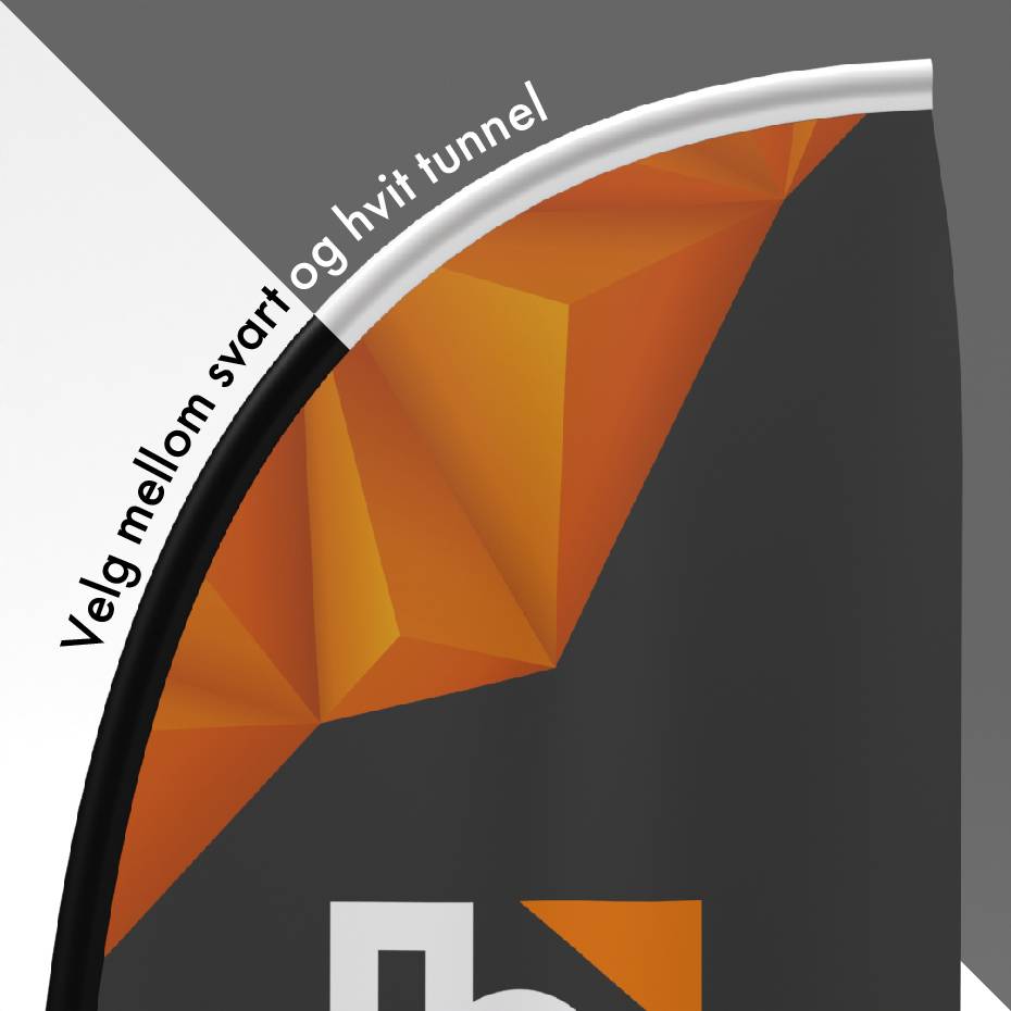 - Kantbånd: Sort eller hvitt til tunellen på flagget