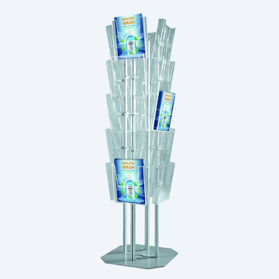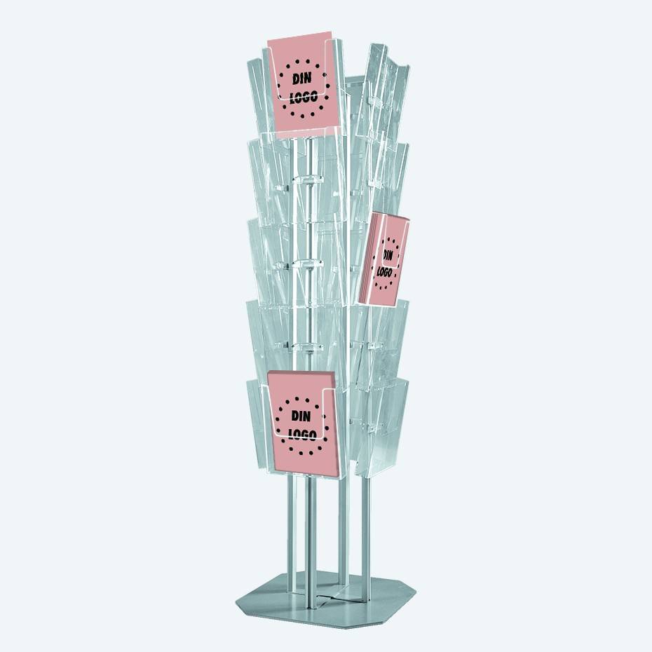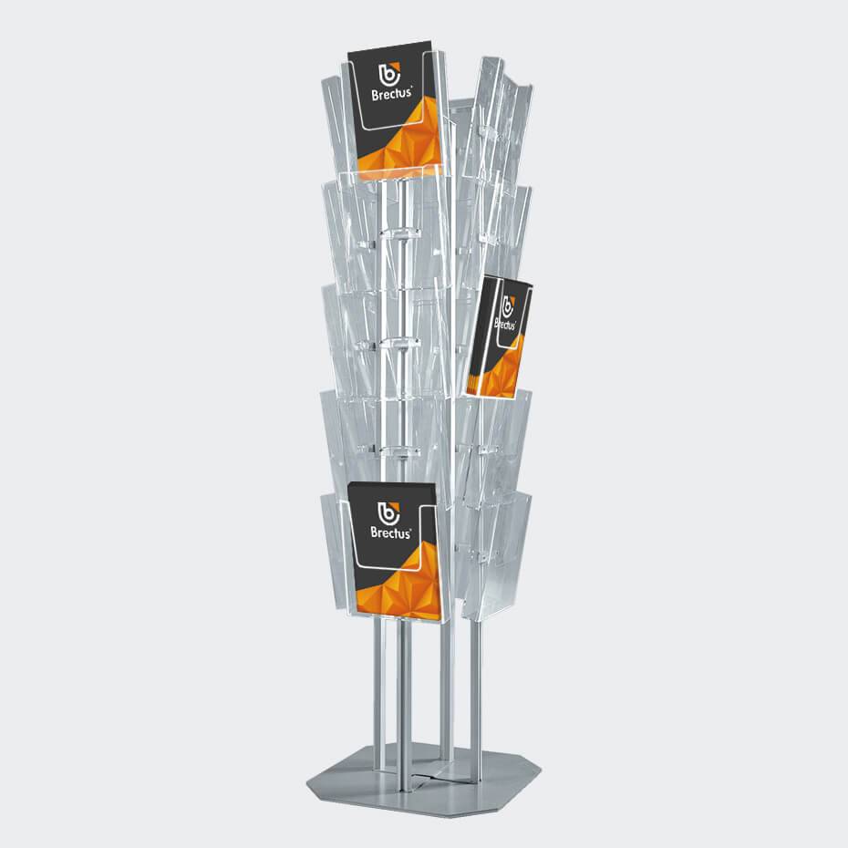 Brosjyrestativ Multi Side er et flersidet bladstativ for multi-display av dine brosjyrer og magasiner.