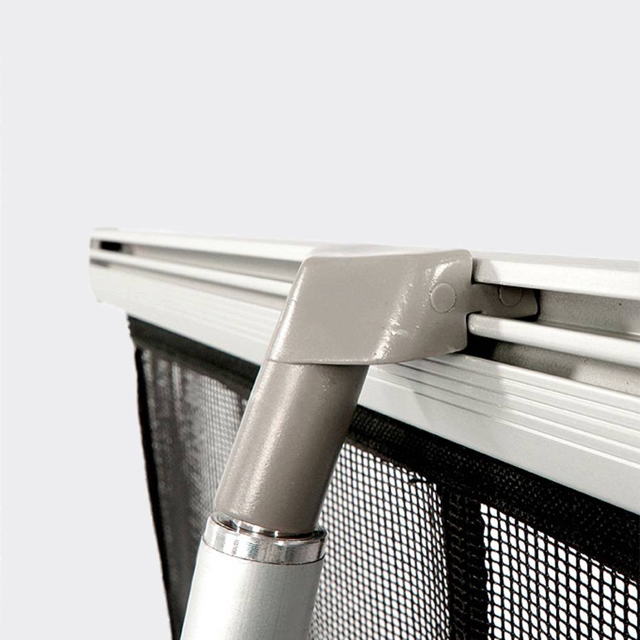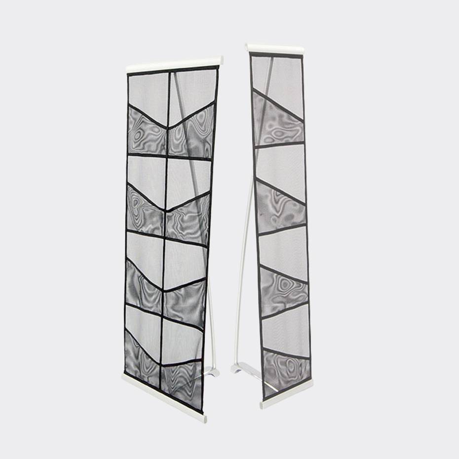 Klemlisten i topp og bunn gjør det enkelt å montere Brosjyrestativ Nett. Med sin lave egenvekt er dette brosjyrestativet ideelt når man har lite plass og for å ta med seg rundt på reiser og messer. Leveres med svart veske.