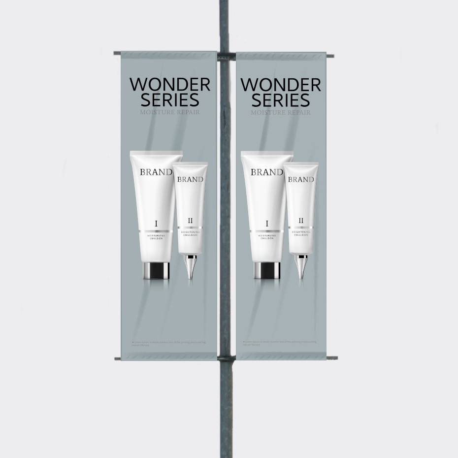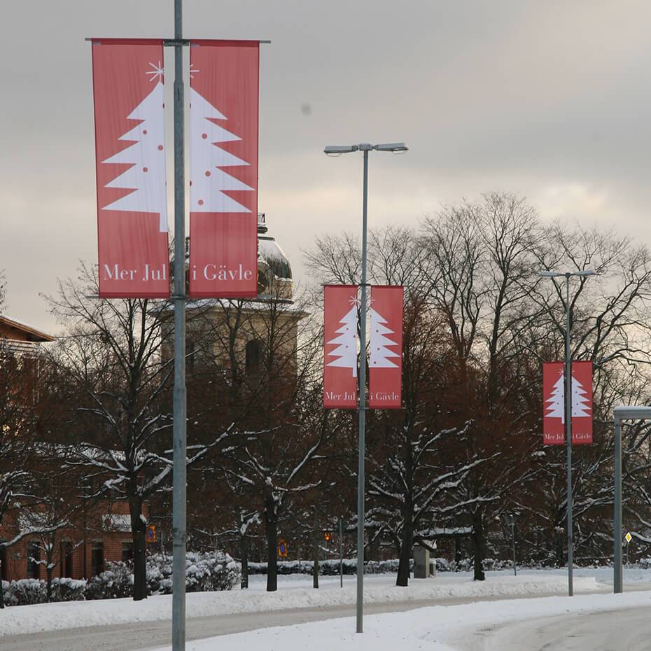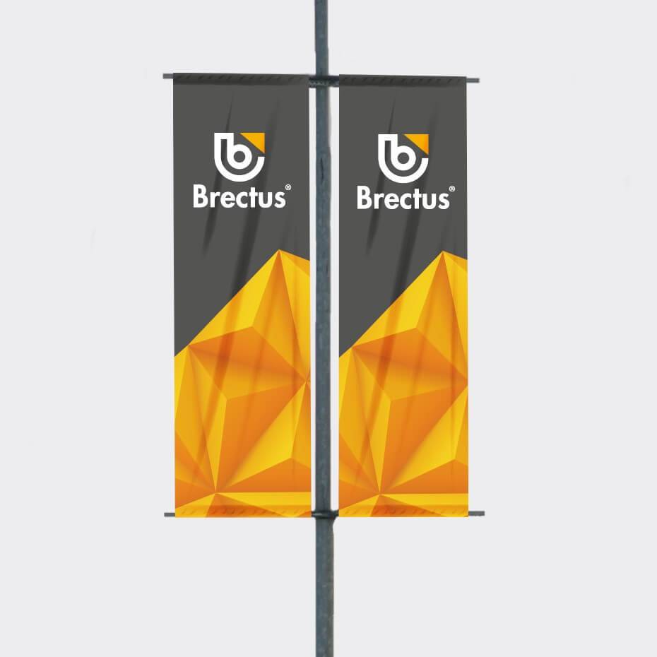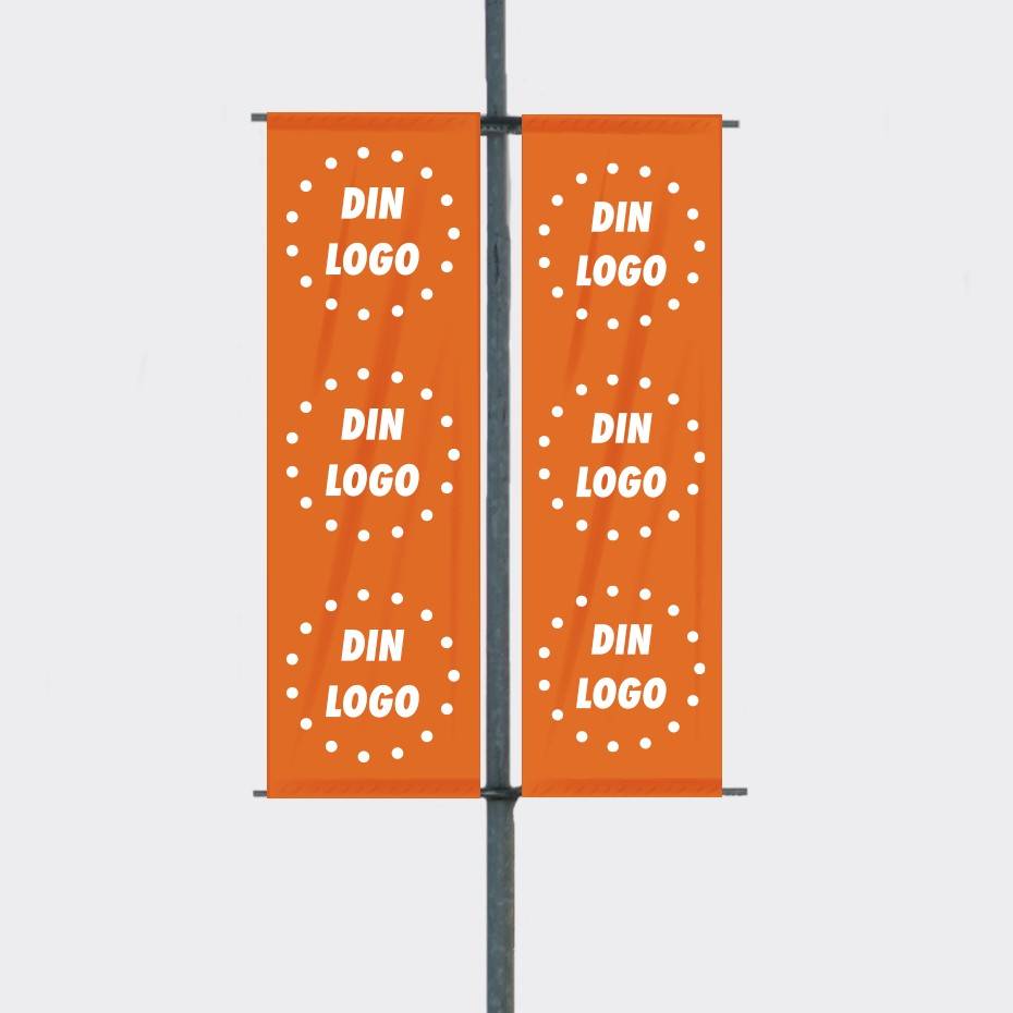 Bannerholder Stolpe til lyktestolpe og flaggstang. Stolpeflagg og gatebanner med dobbeltsidig trykk for reklame på stolper og søyler.