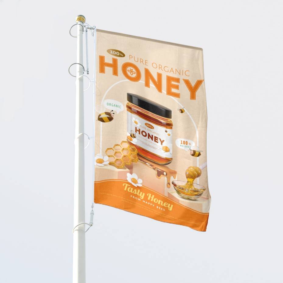 - Flaggstørrelse på firkantet flagg: 100-150 cm bredde og 200-400 cm høyde