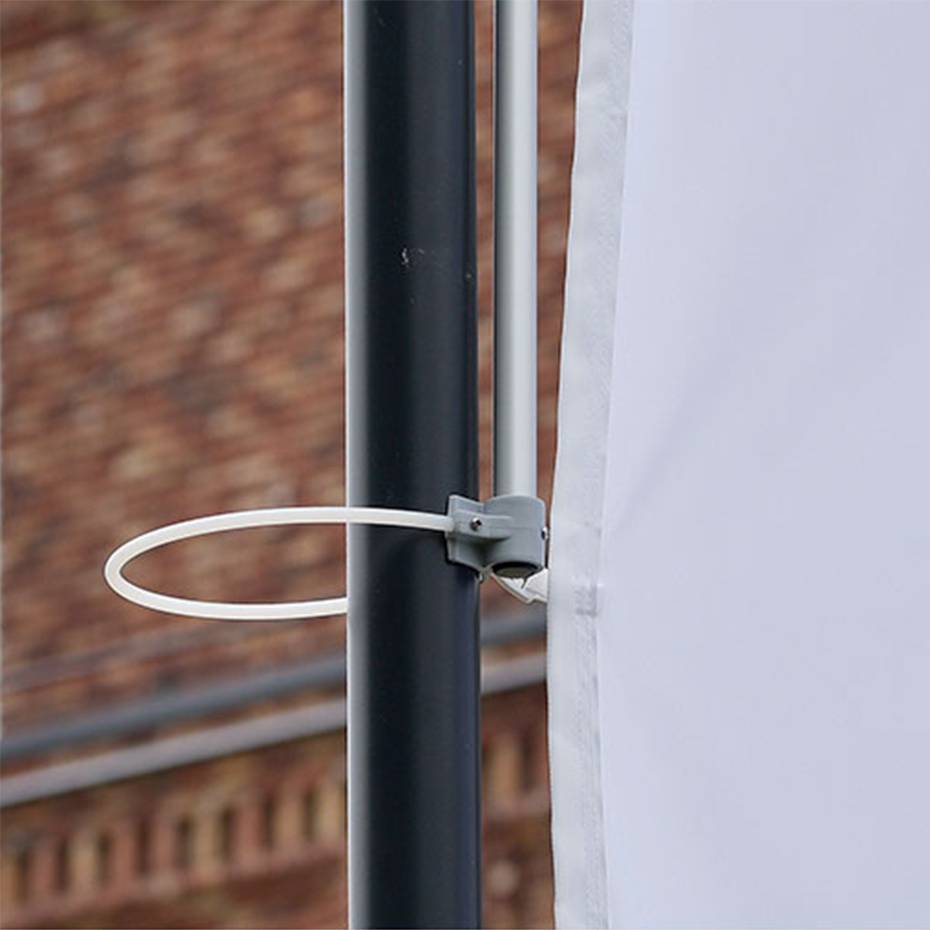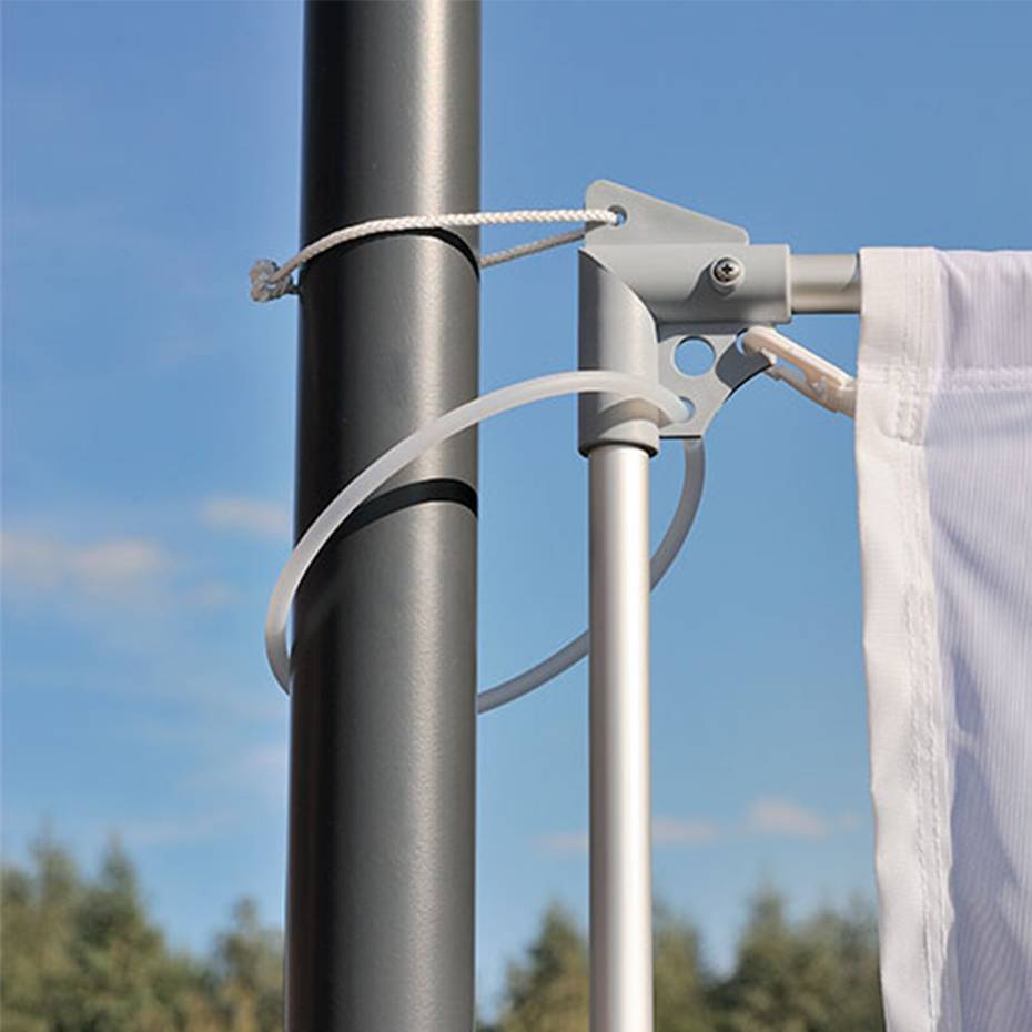 Dette flaggarm systemet holder flagget 90 grader også når det er vindstille. Bannerarmen fåes i to forskjellige størrelser som avhenger av høyden på flaggstangen: 5 – 12 meter og 14 – 18 meter.