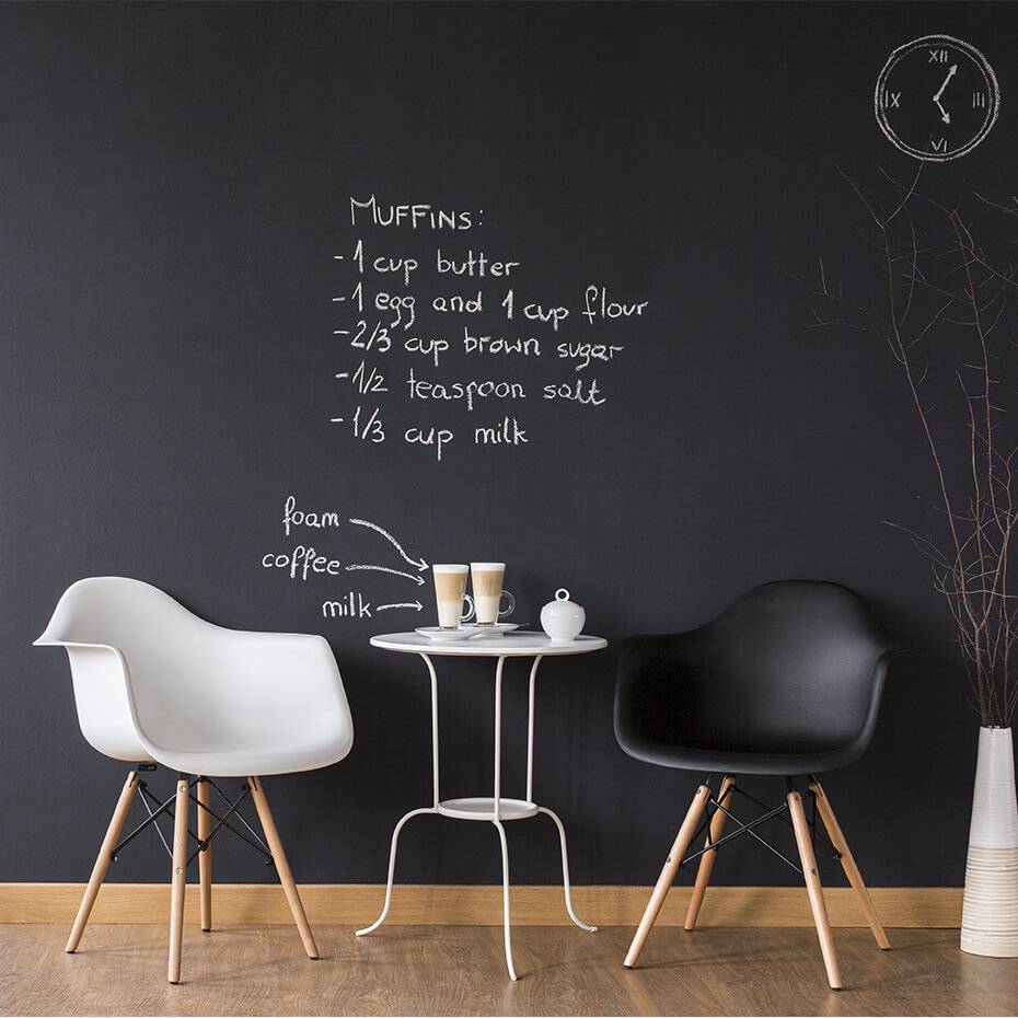 Lag din helt egen tavle for kritt på vegger og dører, eller fest krittfolien på plater for å lage en tavle du lett kan flytte på. Perfekt for bruk på steder med hyppige endringer av informasjon som i restauranter og barer. Egner seg også godt på kontorer, møterom eller andre brukertilpassede steder man ønsker å skrive eller illustrere.