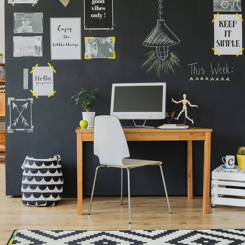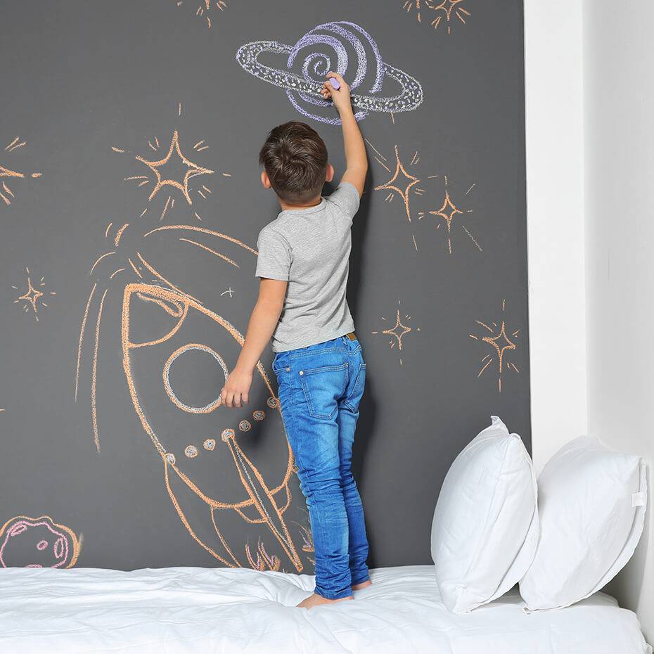 Tavlefolie for kritt forvandler vegger og andre overflater til en tavle. Dekorer hele flater eller lag utskårede former med vår krittfolie.
