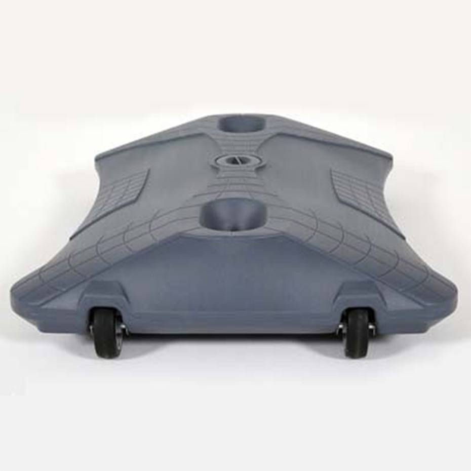 I bunnen av gatebukken, er det en to-hjulet plastdunk som fylles med vann eller sand. Husk frostvæske i vannet om vinteren. Gatebukk med vanndunk fåes i tre størrelser. 50×70 cm, 70×100 cm og A1.
