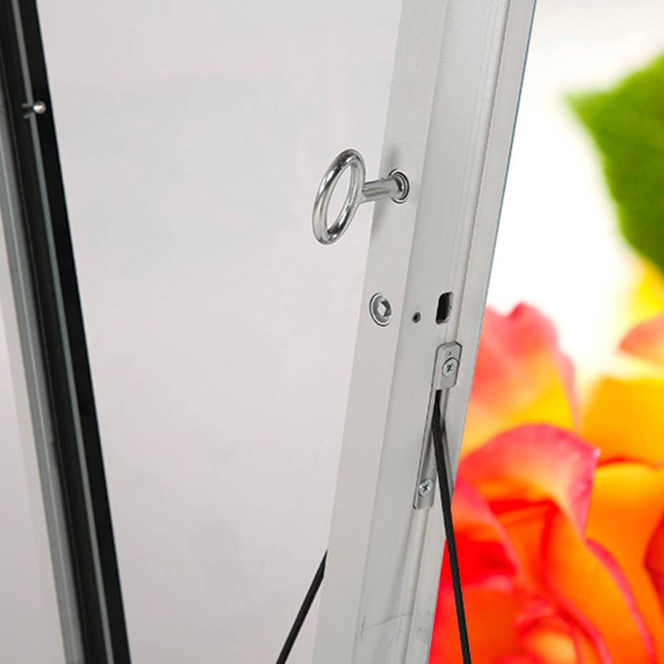 Gatebukk med LED lys er virkelig et blikkfang i mørket, forbipasserende ikke kan unngå å legge merke til. Med låsbare frontdeksler i polykarbonat. Det medfølgende skjulte P04 litiumbatteriet gir høy effekt til tross for lavt energiforbruk. Batteriet kan også enkelt kobles til det låsbare skapet.
