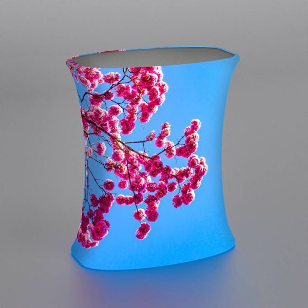 Kombiner gjerne med en flott messevegg og du har en messestand på 1-2-3! Tekstilduken trykkes på et stretch-polyester stoff ved hjelp av sublimerings trykk teknikk for høy kvalitet og langvarig holdbarhet på farger. Duken er dessuten så holdbar at den kan vaskes i en vaskemaskin ved lave temperaturer.