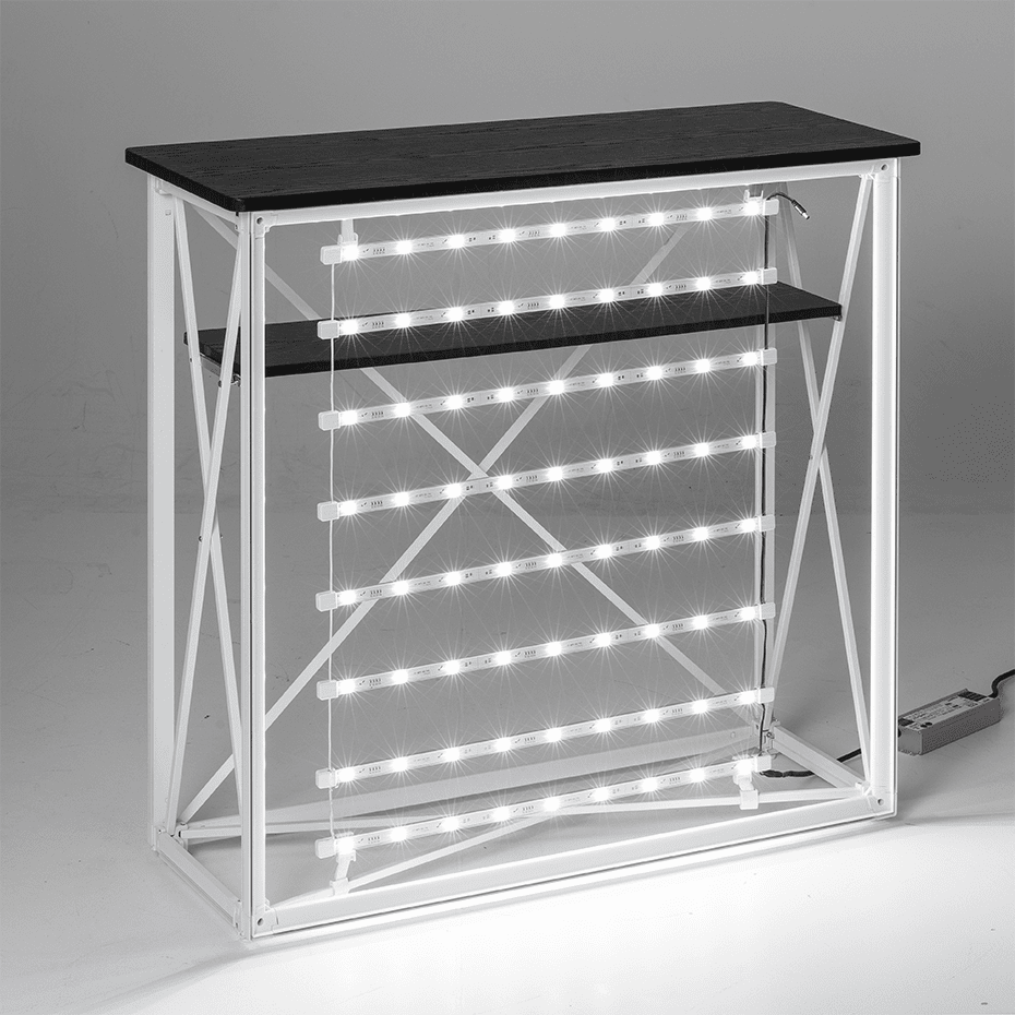 Messebord Klassisk med LED-lys vil garantert være et skikkelig blikkfang og tiltrekke kundene på eventet ditt!