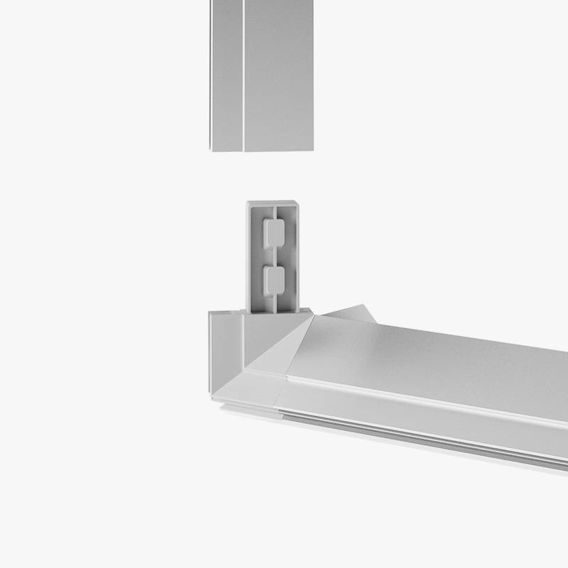 Montering og demontering av grafikk er veldig raskt og enkelt. Rammene slås sammen og Lyskasse Kube Vertikal tar derfor veldig liten plass når den skap pakkes bort. Profilrammebredden er 6,5 x 2 cm, og etter at printen er festet er kun 2 mm kanten synlig. Vi lager også kuber av ulike ikke-standard dimensjoner, skreddersydd til kundens individuelle ønsker.