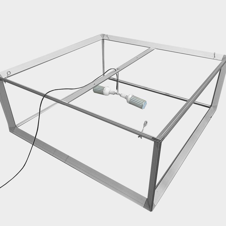 Den opplyste kassen er laget av aluminium og slitesterk plast. Denne typen lysramme, hengt over standen din, vil garantert tiltrekke seg oppmerksomheten til potensielle kunder.