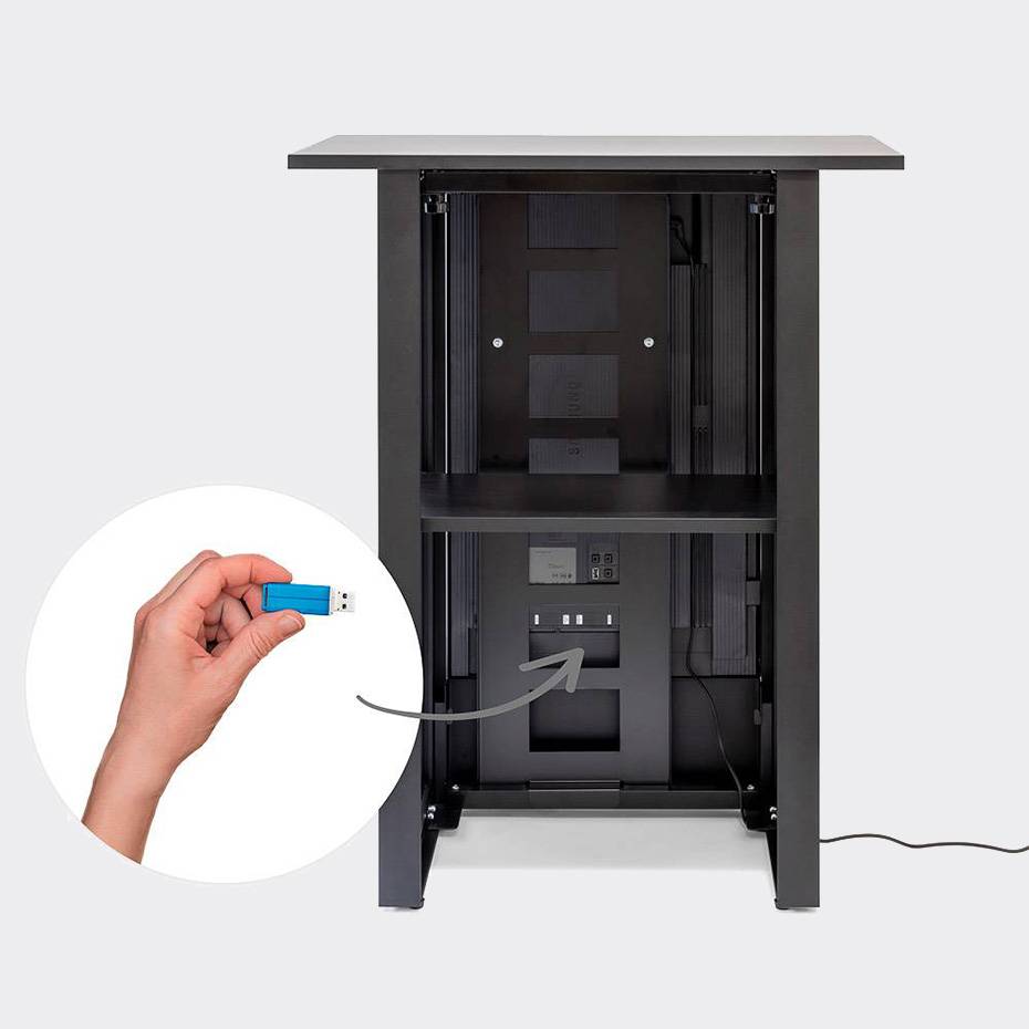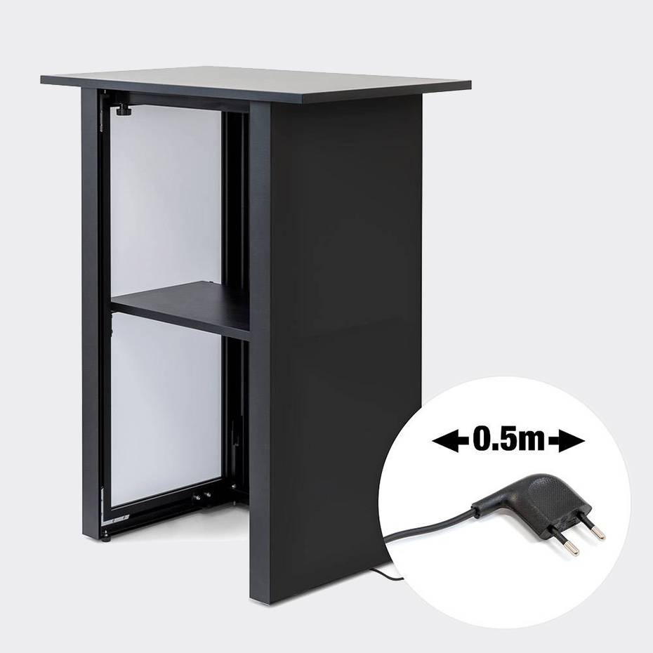 Premium og futuristisk: det er inntrykket et Digitalt Messebord 32″ gir. Alle grunnleggende nødvendigheter er inkludert og med verktøyfri montering, settes derfor bordet opp på noen få minutter. Hyllen inni er dessuten perfekt til lagring og plassering av produkter og brosjyrer. Løft presentasjonen til neste nivå og vis merkevaren, bedriften eller produktet ditt på utstillinger, arrangementer, kjøpesentre, messer eller annet!