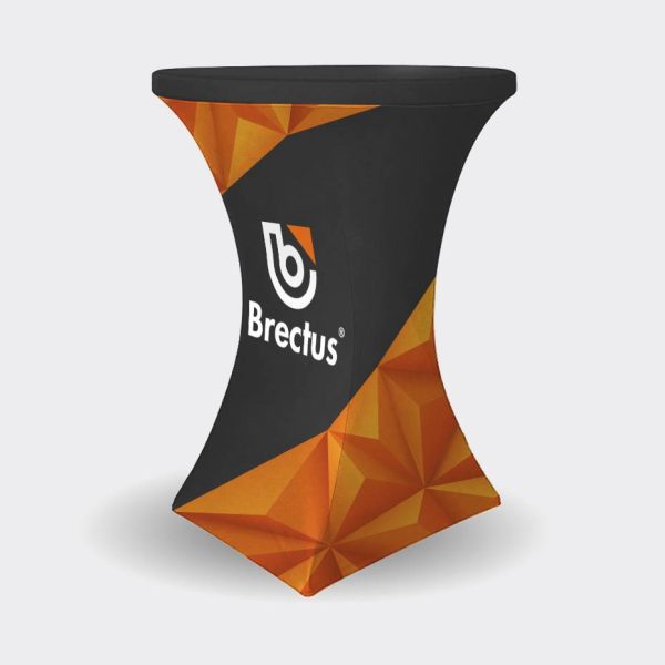 Coctailbord med duk i stretch som kan vaskes og fremdeles holde seg like pen. Duken sitter pent og stramt inntil det sammenleggbare bordet. Dette standbordet er flott og velegnet til bruk i utstillinger, messer, eventer, selskap og mye mer. Med vår høykvalitets trykkmetode på tekstilen får man friske farger og en flott finish med skarpe detaljer.