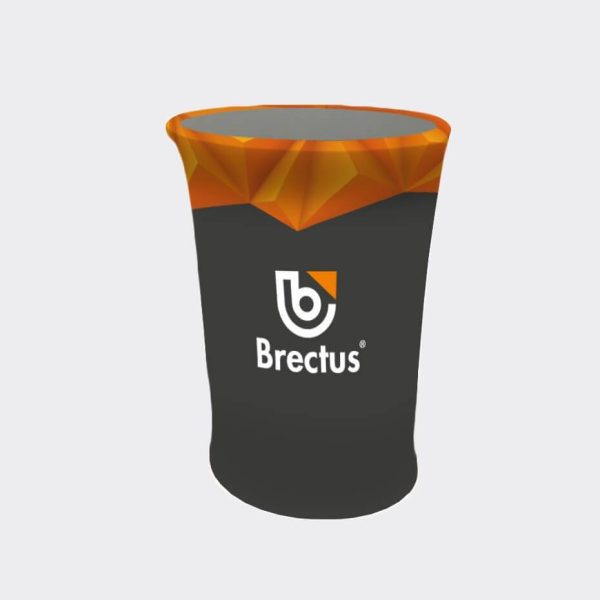Messebord Oval fra Brectus tar liten plass, er lett å transportere og veldig enkelt å montere. Topplaten er 40 cm dyp og bordet er 96 cm høyt. Bordet er sammenleggbart og leveres dessuten med en tekstilduk i stretchmateriale. Logo og farges velges etter behov og man kan også bestille flere forskjellige duker, alt etter behov og bruk. Duken kan vaskes på 40 grader.
