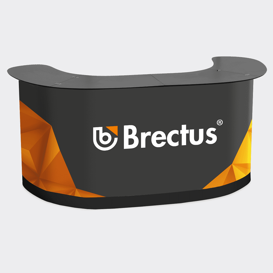 Vårt største messebord, Messedisk Buet XL, gir dessuten fantastiske muligheter med stor profilering og lagringsplass. Her kan du samtidig få en bærbar resepsjon med utskiftbar front.
