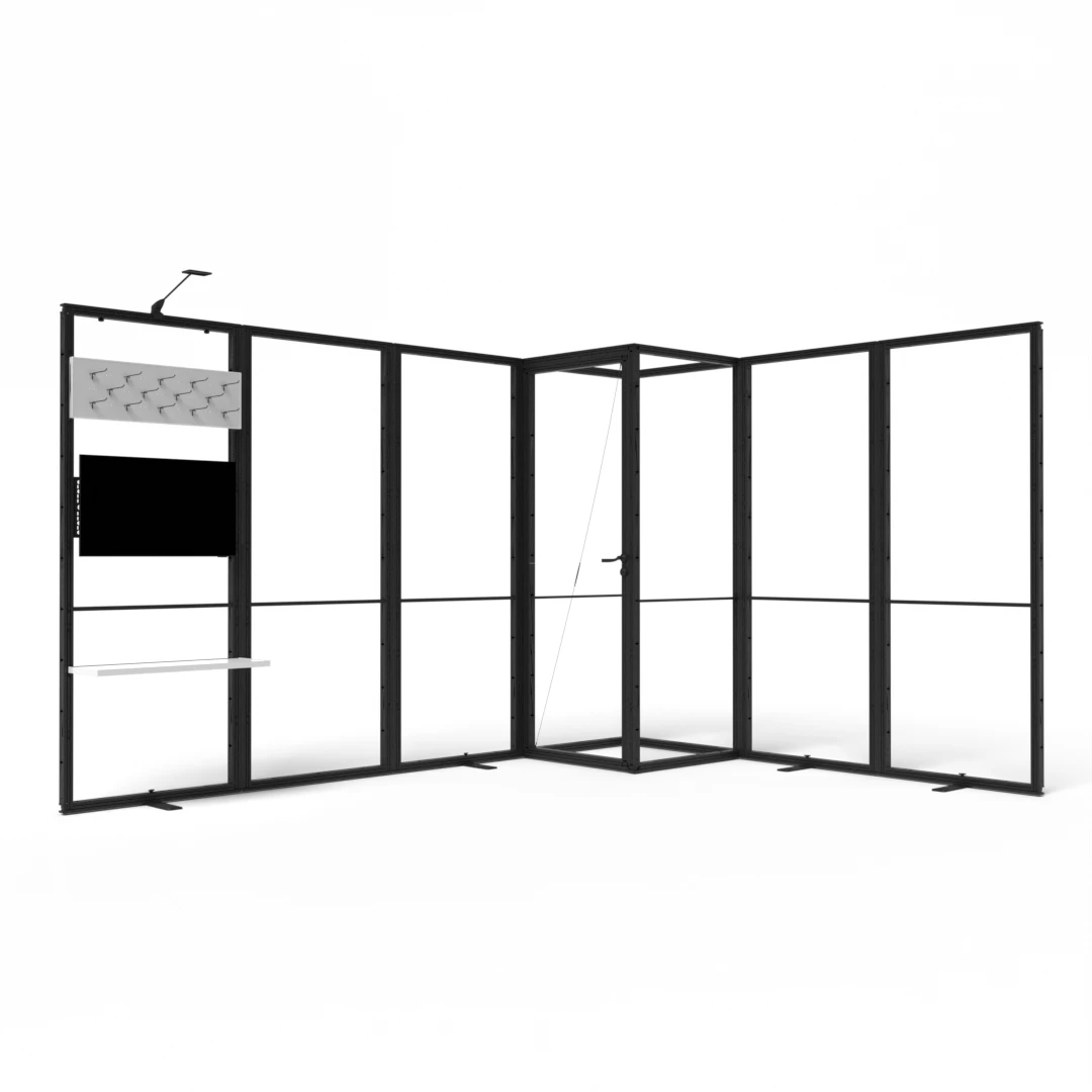 Stort utvalg av tilbehør er tilgjengelig, som for eksempel: hyller, TV-stativ, ekstra rammer, svingbare paneler, LED-belysning og låsbar dør. Messestand Multiframe har mange bruksområder og noen forslag er: Messe, stand, butikker, showroom, hovedkontor, demorom, idrettshaller. Multiframe rammesystemet er ekstremt lett, slitesterk og solid og egner seg derfor godt til gjenbruk.