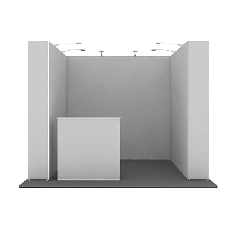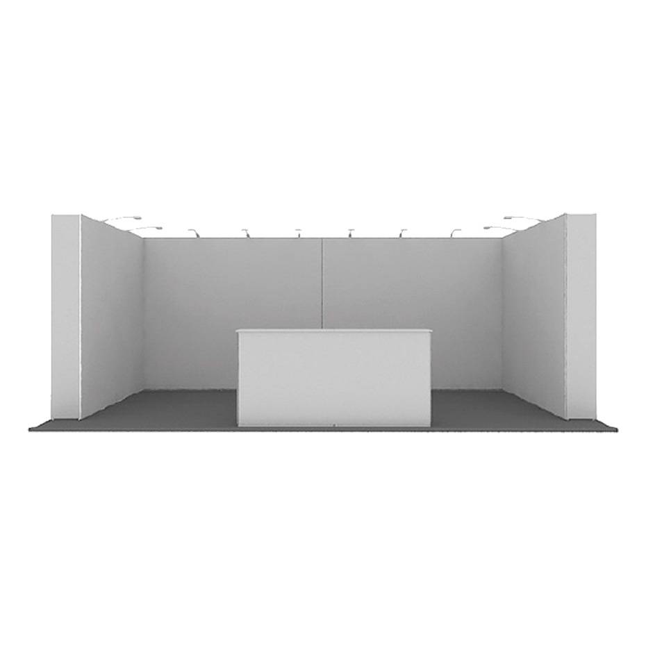 Komplett popup modulsystem i tekstil leveres komplett med vegger, messebord, lamper og bærebag. Rask levering og høy kvalitet.