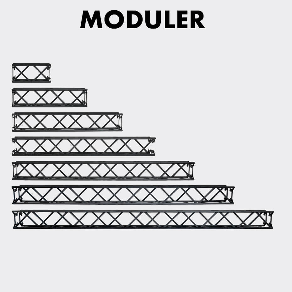 Trossekonstruksjon, et modulbasert messesystem av byggeklosser. Bygg din egen stand. Masse flott tilbehør til vårt Crown Truss Modulsystem.