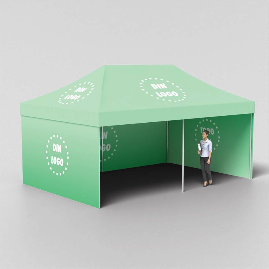 Messetelt i størrelse 4×4 meter tar størrelsen et hakk videre. Robust og funksjonelt telt med trykk av høy kvalitet som kan brukes ute og inne hele året. Eventtelt med stabil teltkonstruksjon som er laget for gjentatt bruk og kan ikke sammenlignes med billige telt.
