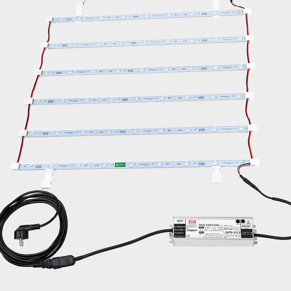 - Innhold: Messevegg system, printet duk med silikon lister, LED lys, bag til oppbevaring og transport