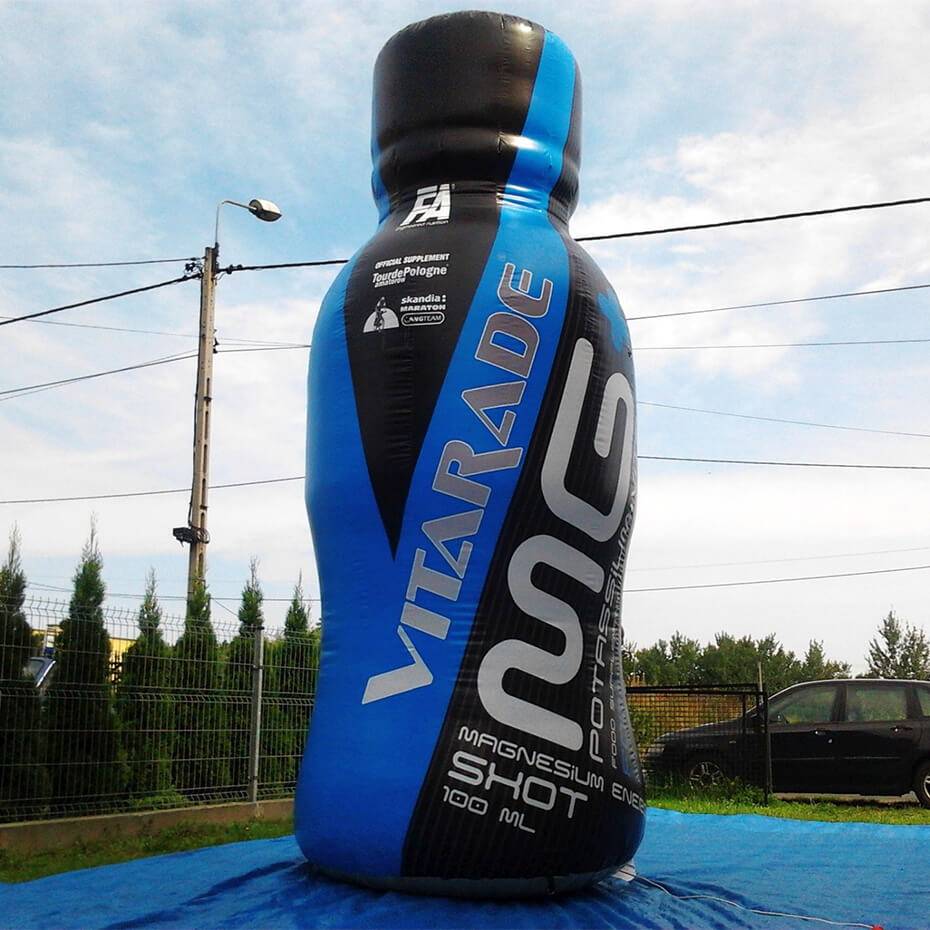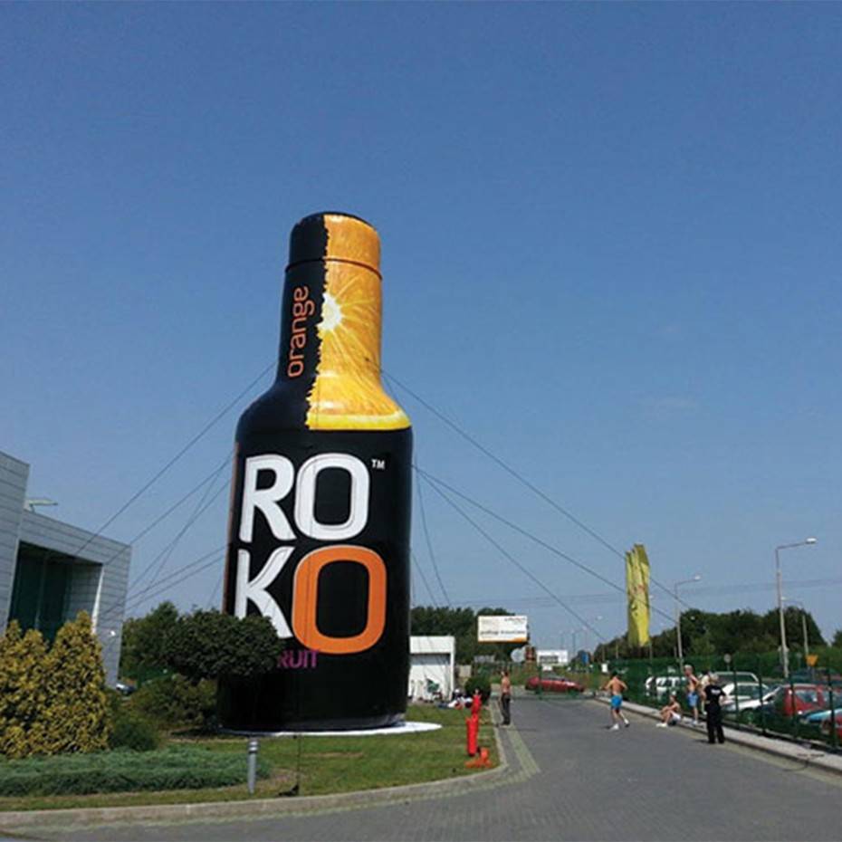 Oppblåsbare flasker med trykk markedsfører din bedrift, kampanje eller logo. Våre oppblåsbare flasker er spesialtilpasset ditt behov. Her snakker vi om larger-than-life reklame med blikkfang effekt! Markedsføring av drikkevarer eller andre væsker på flasker som fullstendig overgår vanlige reklameprodukter som bannere og rollups.