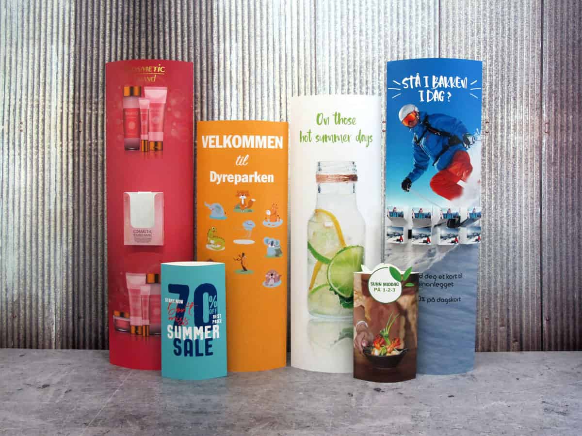 Ønsker du hjelp til å design popup alarmsøyler, vil våre dyktige grafikere bistå kreativt med alt du måtte ønske. Husk at en god produktemballasje styrker et godt produkt. Produksjonstid er ca. en uke. Noe lengre ved større bestillinger. Kombiner gjerne med flere papp produkter som for eksempel, pappdisplay, eller Takheng, og skap et artig miljø til reklamen din.