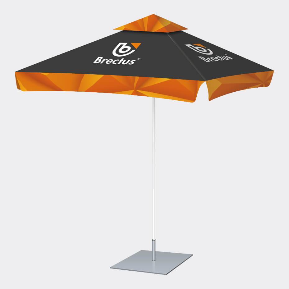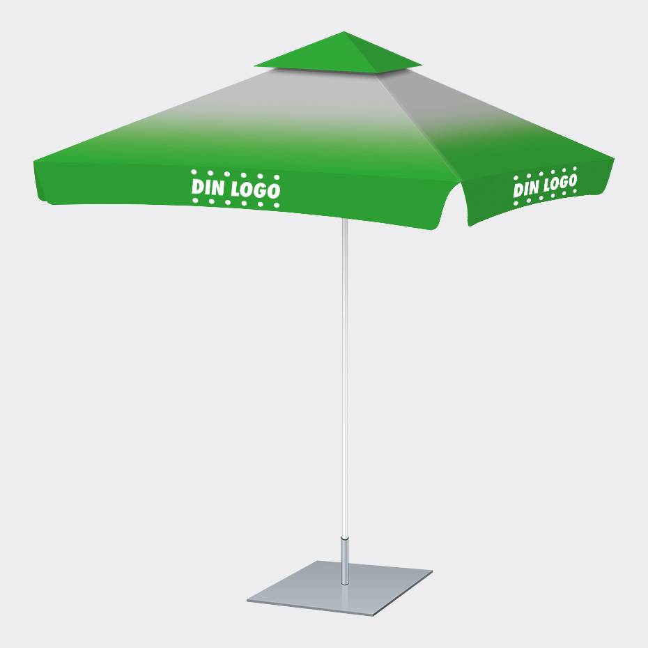 Parasoll firkantet med trykk, til kafeen eller events, flere størrelser. Parasoll med dobbel firkantet tak. Topp kvalitet Ring oss i dag!
