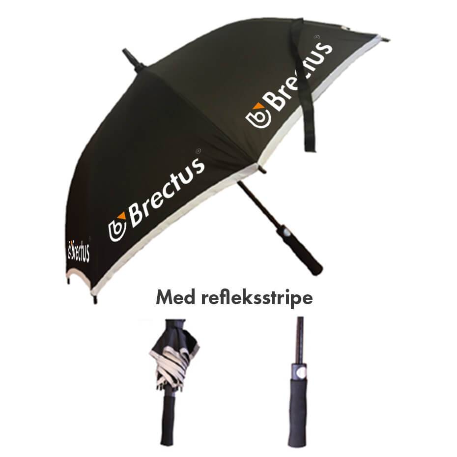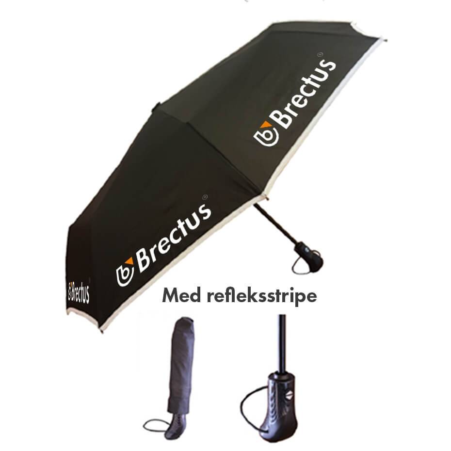 - Sammenleggbar paraply med refleksstripe. Denne typen er i meget god kvalitet med auto åpne og lukke funksjon. Str. 106 cm. diameter.