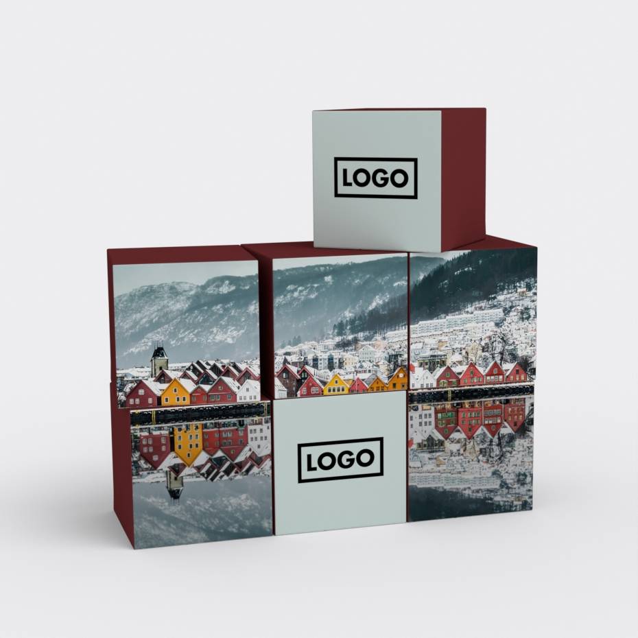 Vær kreativ og sett sammen ditt helt spesielle puslespill som engasjerer både barn og voksne med kuber med trykk. Enten det er til ditt event, arrangement eller som permanent innslag i møterom, lekerom, haller osv vil byggeklosser med trykk gjøre inntrykk. La de besøkende ha det litt moro om det er reklamekuber eller lekekuber.