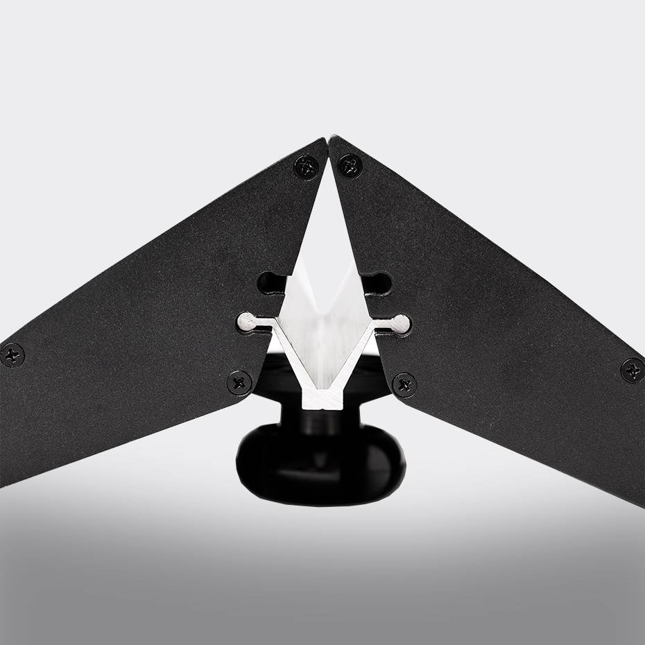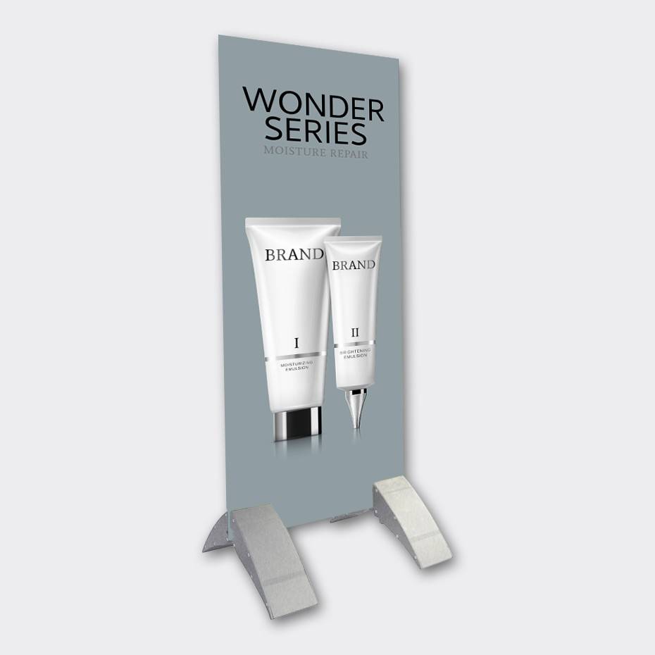 Enkel montering ved å plassere platen i åpningen, og med den justerbare skruen plassert på undersiden, strammes enkelt grepet på det grafiske displaypanelet du ønsker å feste til platefoten for et stilig og raffinert utseende. Et fint alternativ til rollup.
