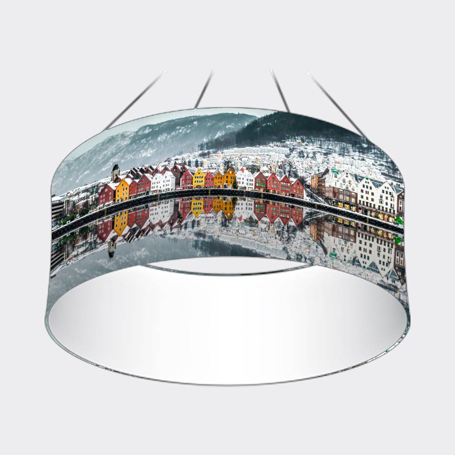 Benytt muligheten til å eksponere din logo eller kampanje fra taket over messestanden eller på eventet med Takheng Rund – budget!