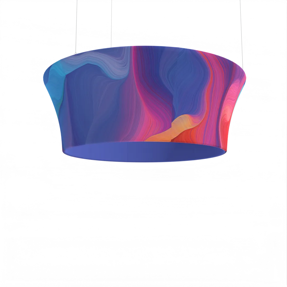 Søkeord: takdisplay, banner som henger fra tak, rundt takheng, takheng til messe